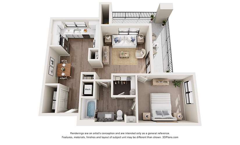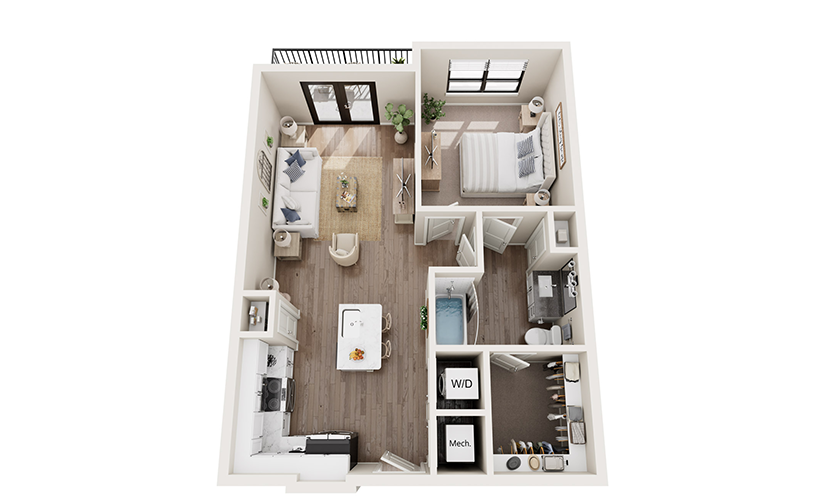 A1 | 1 Bed 1 Bath | 746 sq.ft.
