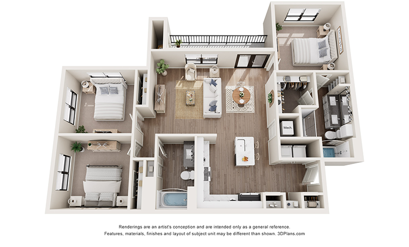 C1 | 3 Bed 2 Bath | 1407 sq.ft.